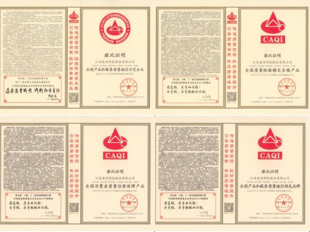 3月15日,通用股份被中國質(zhì)量檢驗(yàn)協(xié)會(huì)授予2022年全國產(chǎn)品和服務(wù)質(zhì)量誠信示范企業(yè)、全國消費(fèi)者質(zhì)量信譽(yù)保障產(chǎn)品、全國質(zhì)量檢驗(yàn)穩(wěn)定合格