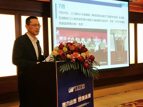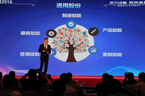 通用股份董事長顧萃先生在會(huì)議上作了“賦能2018”的重要主題演講。回首2017,顧董對(duì)宏觀經(jīng)濟(jì)和行業(yè)情況進(jìn)行了生動(dòng)解讀。展望2018,顧董以“大、新、快、鏈”四個(gè)字闡述了當(dāng)下時(shí)代的發(fā)展趨勢(shì),探討了智能化以及創(chuàng)新思維對(duì)未來工業(yè)和生活的深遠(yuǎn)影響。通用股份將從“制造、產(chǎn)品、營銷、管理、服務(wù)”五大賦能促進(jìn)變革發(fā)展,搶占先發(fā)優(yōu)勢(shì),智能制造升級(jí),全球化視野布局,全方位提高效率,做最好的自己。