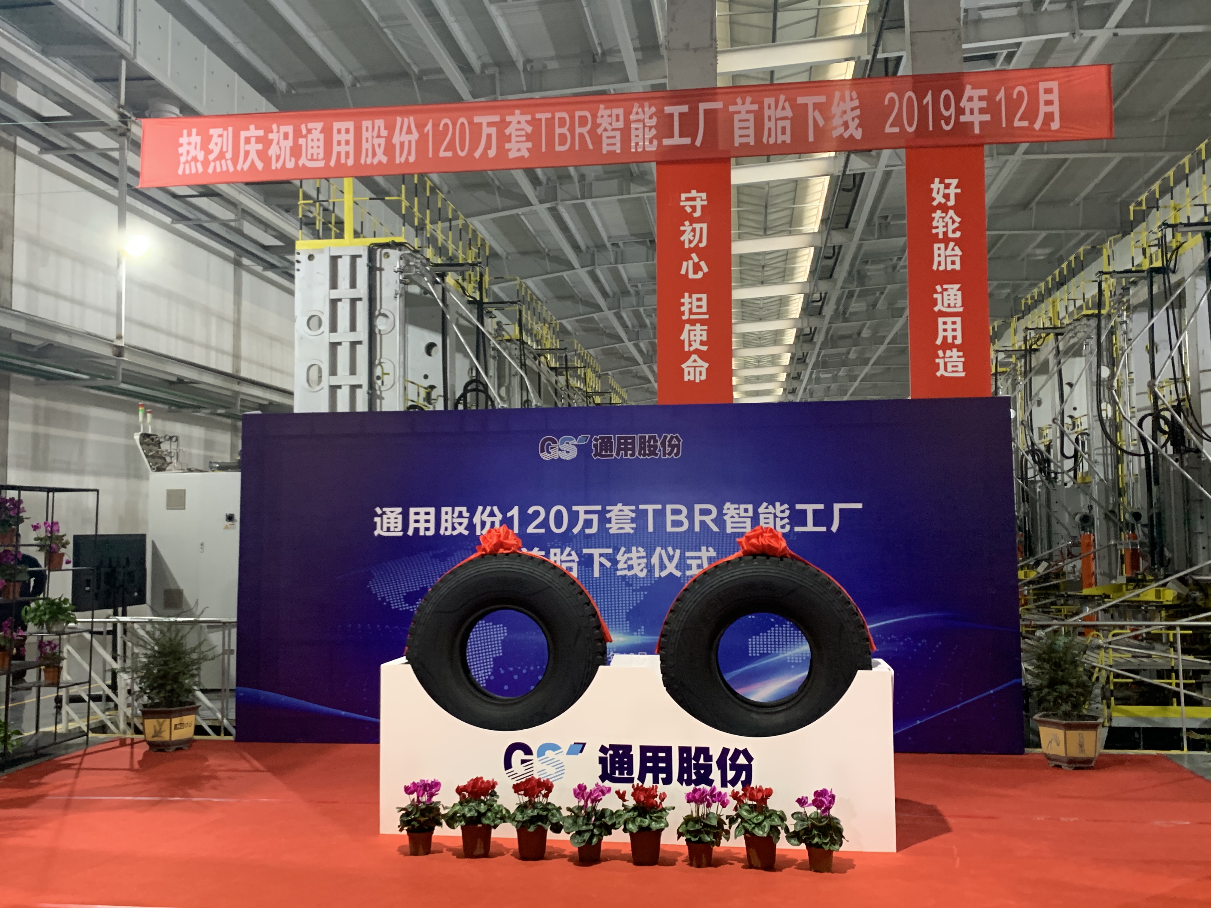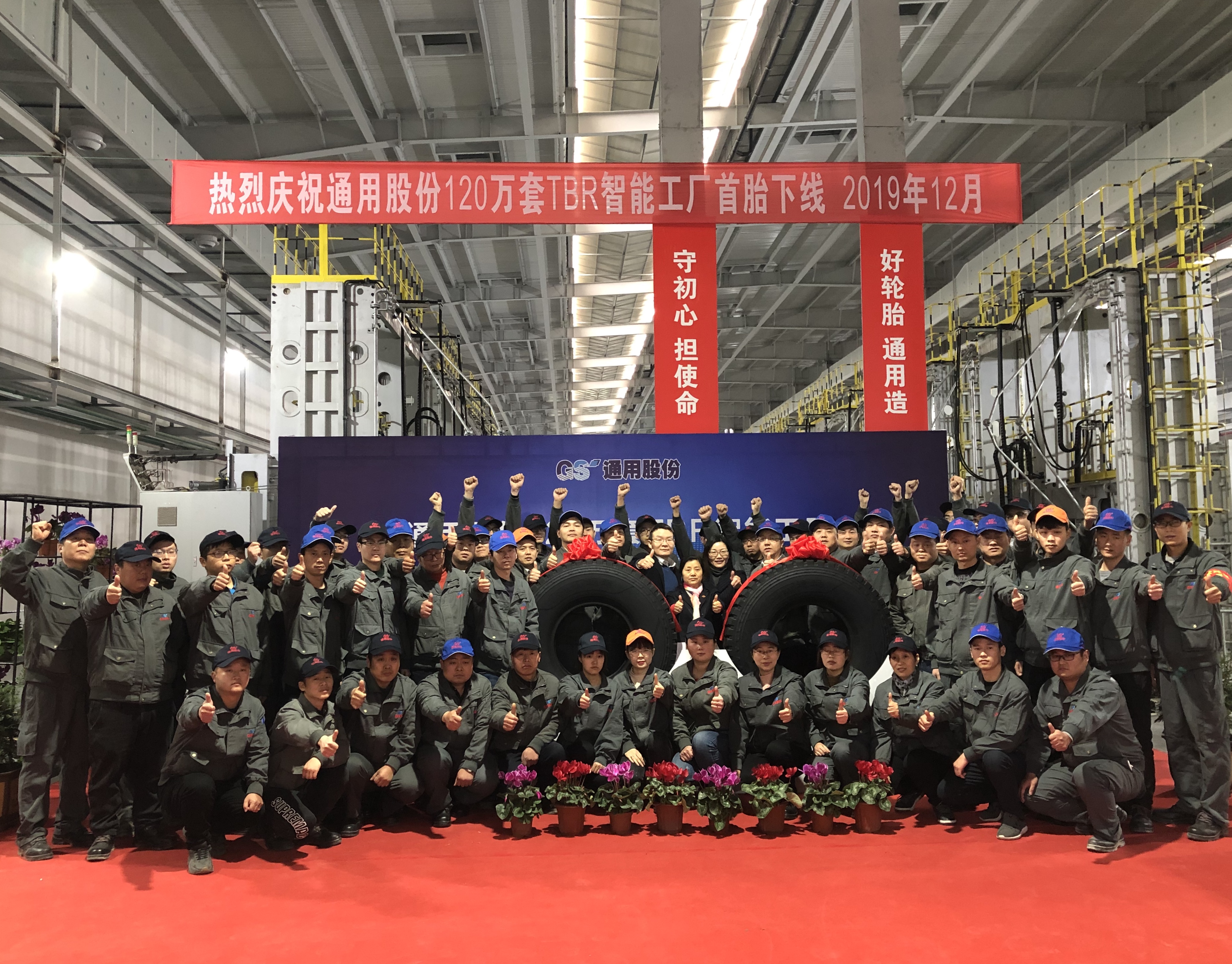 12月27日上午,通用股份120萬(wàn)套TBR智能工廠首條全鋼子午線輪胎正式下線。下線首胎為通運(yùn) 12.00R20—XR856。通用股份董事長(zhǎng)顧萃,常務(wù)副總經(jīng)理程金元、生產(chǎn)板塊總經(jīng)理虞秀鳳等領(lǐng)導(dǎo)出席了本次儀式。