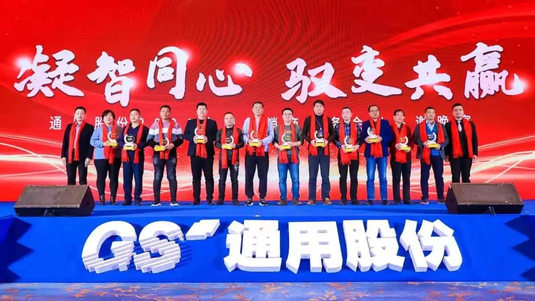 唯創(chuàng)新者強(qiáng),唯進(jìn)化者勝。本次會(huì)議隆重表彰了為通用股份發(fā)展貢獻(xiàn)力量的經(jīng)銷(xiāo)商合作伙伴,晚宴現(xiàn)場(chǎng)頒發(fā)了2020年度潛力經(jīng)銷(xiāo)商獎(jiǎng)、先進(jìn)經(jīng)銷(xiāo)商獎(jiǎng)、優(yōu)秀經(jīng)銷(xiāo)商獎(jiǎng)、杰出經(jīng)銷(xiāo)商獎(jiǎng)等獎(jiǎng)項(xiàng)。他們以高昂的斗志馳騁跨越,在商海的競(jìng)爭(zhēng)中勇立潮頭,乘風(fēng)破浪,他們是通用股份親密無(wú)間的合作伙伴,一座座獎(jiǎng)杯記錄了他們的榮譽(yù)和付出,會(huì)議現(xiàn)場(chǎng)氣氛不斷推向高潮!
