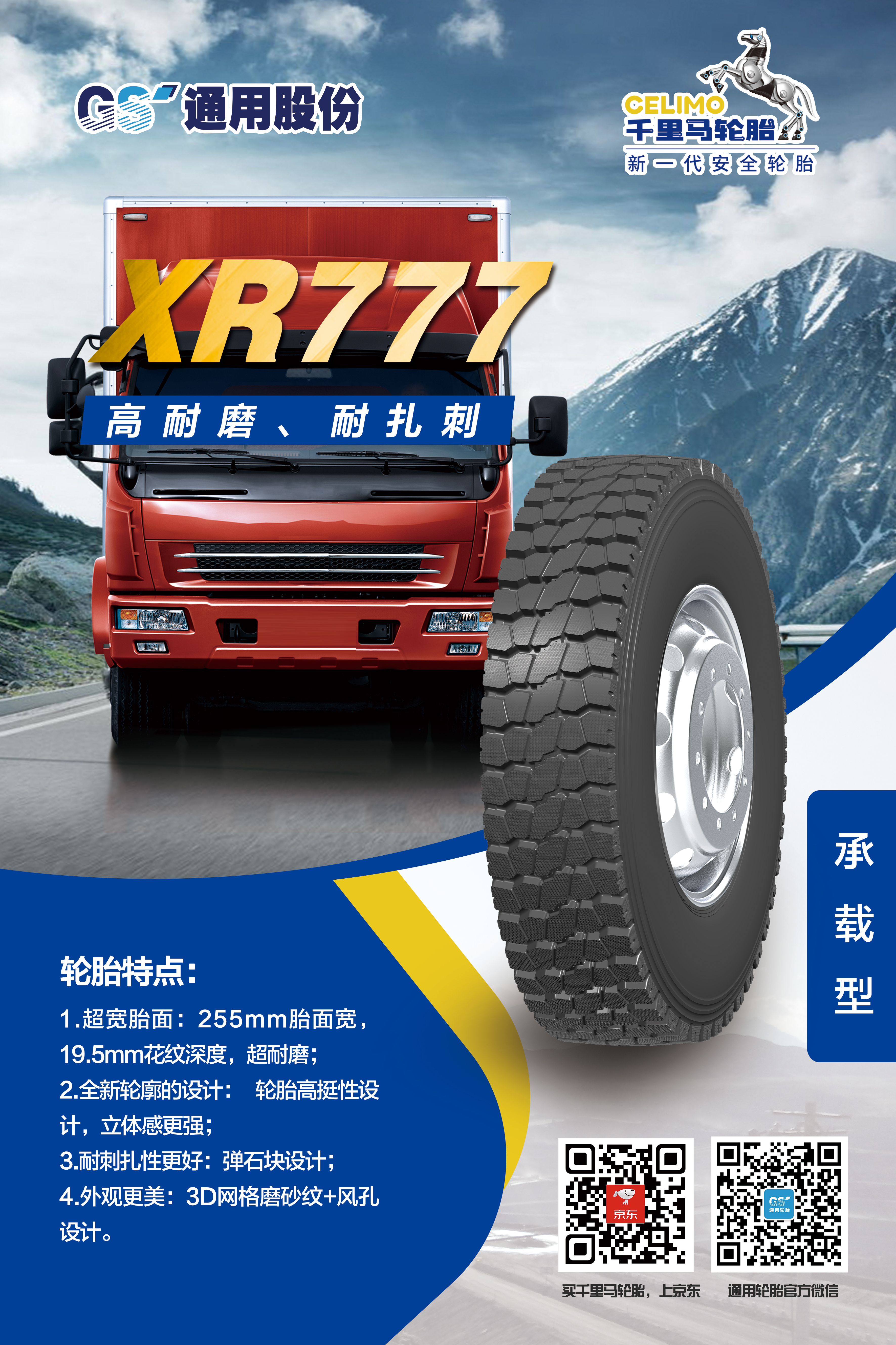 為適應(yīng)不斷變化的市場環(huán)境,滿足消費者對輪胎性能的更高需求,通用股份以創(chuàng)新為突破口,應(yīng)用新進(jìn)技術(shù),在承載能力上實現(xiàn)突破,推出兩款專為中短途運輸車輛量身打造的承載新品——XR666、XR777。作為全新承載系列,XR666、XR777使用全新低生熱胎面配方,耐磨、生熱性能較公司同類產(chǎn)品提升20%以上,有效解決輪胎用戶痛點。除了性能優(yōu)異,兩款輪胎的顏值也十分出色,均采用3D網(wǎng)格磨砂花紋以及全新輪廓設(shè)計,簡潔而不失格調(diào),美觀而盡顯大氣。