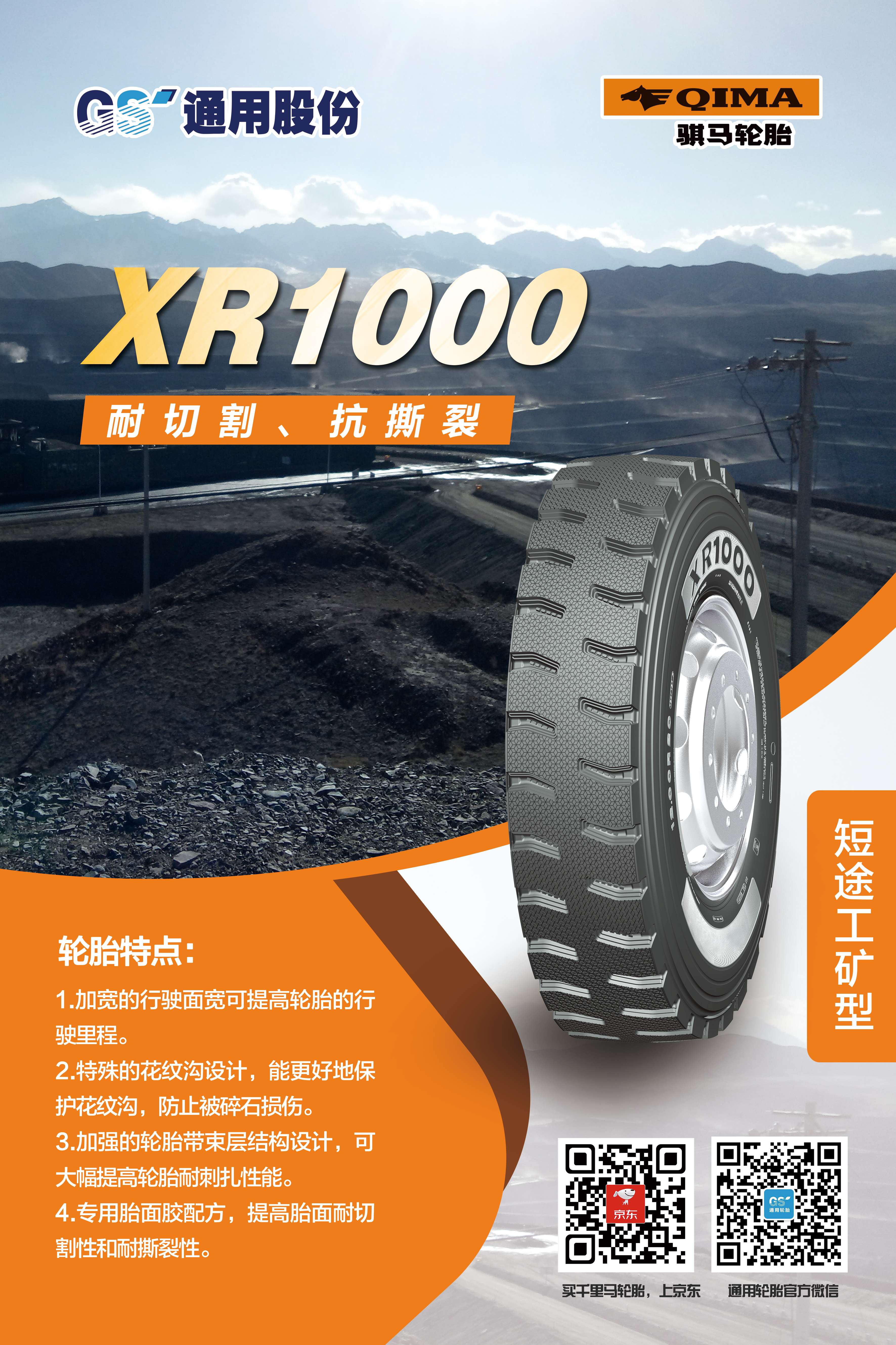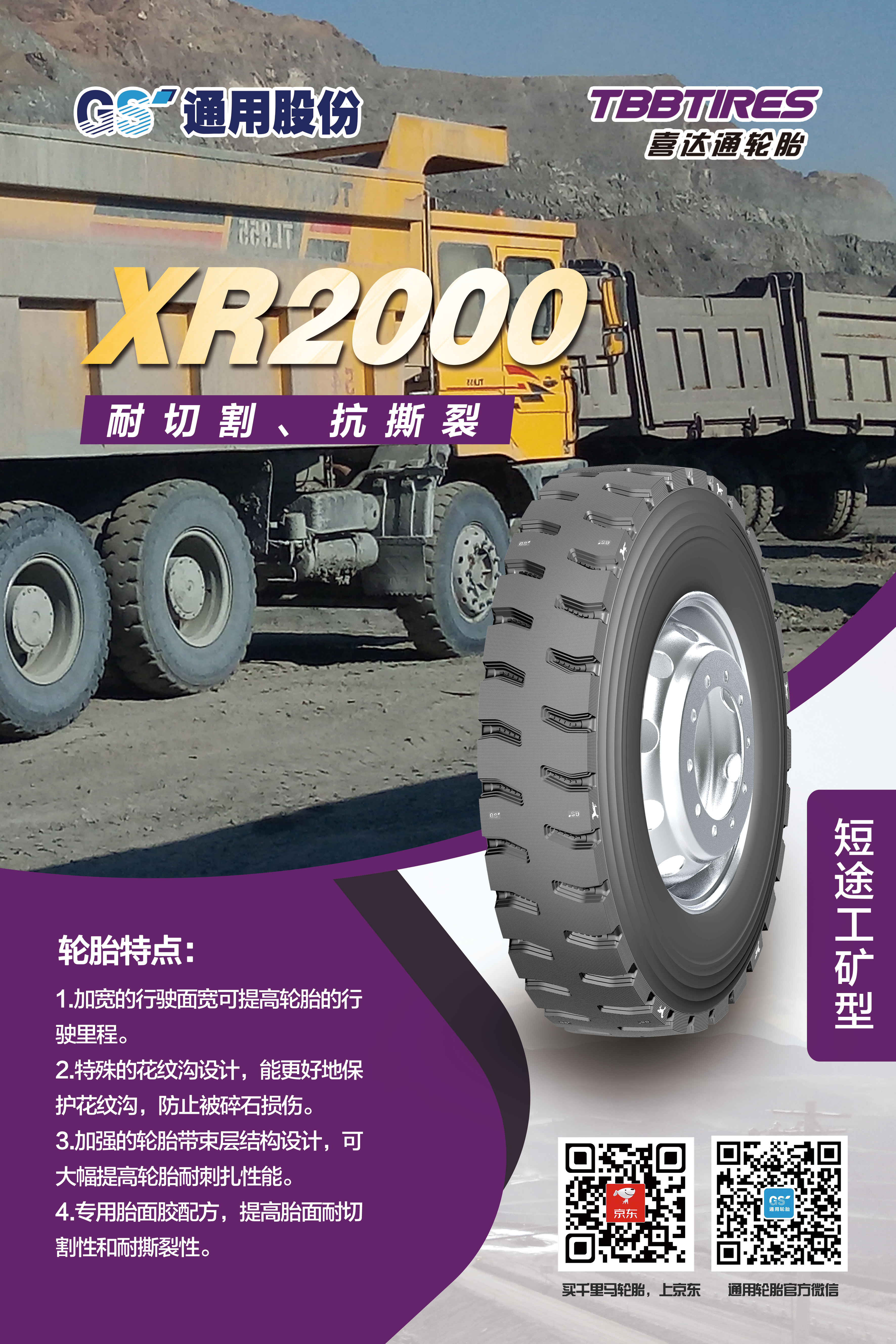 眾所周知,自2007年自主研發(fā)的第一代短途礦山胎問世,通用股份在行業(yè)率先開創(chuàng)了礦山胎這一品類,充分滿足礦區(qū)特殊使用條件和特點,備受中國礦山車司機(jī)的喜愛。近年來,通用股份立足國內(nèi)礦區(qū)路況特點,對輪胎花紋、配方、結(jié)構(gòu)等進(jìn)一步升級,重磅推出礦山胎傳承之作——XR1000、XR2000。兩款輪胎均擁有全新的外觀設(shè)計、獨特的結(jié)構(gòu)設(shè)計、高耐磨配方設(shè)計。全新胎面配方的應(yīng)用,大幅提升胎面耐刺扎性能。加強的輪胎帶束層結(jié)構(gòu)設(shè)計,大幅提高輪胎耐扎刺性能。加寬的行駛面,有效提高輪胎行駛里程。相關(guān)數(shù)據(jù)表明,相比同類產(chǎn)品,耐久時數(shù)提升20%,胎圈耐久提升30%,是廣大礦山胎用戶的信心之選。