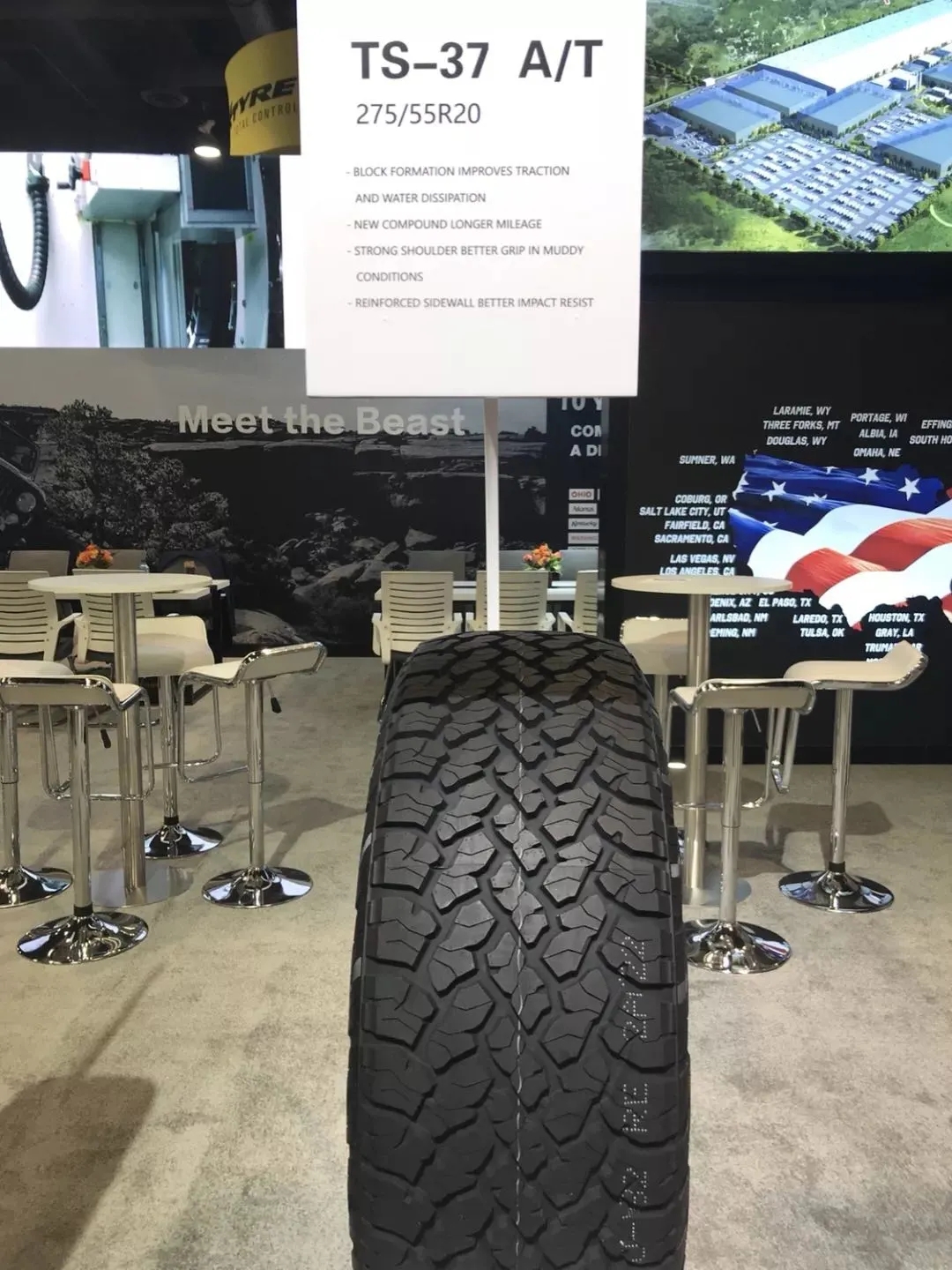 通用股份TBBTIRES品牌登陸美國(guó)市場(chǎng)以來(lái),銷量不俗,深受國(guó)外市場(chǎng)青睞,參展的觀眾也經(jīng)常針對(duì)性的參觀并咨詢相關(guān)問(wèn)題。本次SEMA展會(huì)上,TS-07H/T、TS-37 A/T等一系列性能優(yōu)異的輪胎產(chǎn)品受到了外國(guó)客戶們的一致好評(píng)。