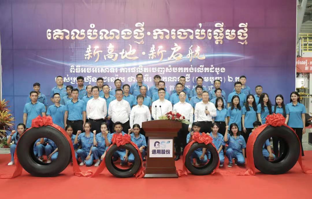 “5、4、3、2、1,出鍋!.......”3月18日,在通用輪胎科技柬埔寨公司總經(jīng)理陶國(guó)忠的倒數(shù)聲中,柬埔寨工廠首胎成功下線,標(biāo)志著通用股份海外“雙基地”的正式建成、全面啟航。在首胎下線儀式上,西哈努克省省長(zhǎng)郭宗仁、喬治·布什美中關(guān)系基金會(huì)創(chuàng)始人兼主席尼爾·布什,中國(guó)民營(yíng)經(jīng)濟(jì)國(guó)際合作商會(huì)會(huì)長(zhǎng)、紅豆集團(tuán)董事局主席周海江,通用股份董事長(zhǎng)顧萃等相關(guān)領(lǐng)導(dǎo)和全體員工共同見證了這一歷史時(shí)刻。