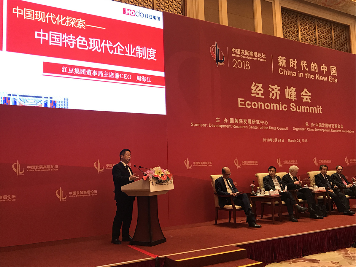 “中國共產(chǎn)黨與中國現(xiàn)代化”分組會是本次論壇的亮點之一,由人民網(wǎng)總裁葉蓁蓁主持,中央黨史和文獻(xiàn)研究院院務(wù)委員陳晉、劍橋大學(xué)教授彼得•諾蘭、新加坡國立大學(xué)教授鄭永年、紅豆集團(tuán)董事局主席兼CEO周海江等領(lǐng)導(dǎo)專家作了交流發(fā)言。周海江結(jié)合紅豆集團(tuán)多年來探索實踐的《中國特色現(xiàn)代企業(yè)制度》,與中外嘉賓分享了企業(yè)黨建與中國現(xiàn)代化的關(guān)系。