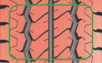 ·胎面接地面積較大?;y塊之間具有加強(qiáng)筋設(shè)計(jì)。輪胎磨損更加均勻,使用壽命更長。